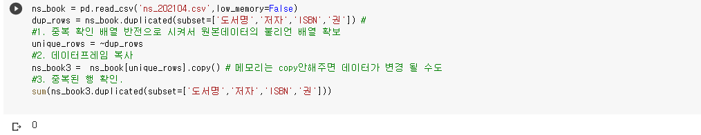 1. 중복 확인 배열 반전으로 시켜서 원본데이터의 불리언 배열 확보. keep 기본이 first이므로 중복 처음데이터가 True 그 다음 부터 False