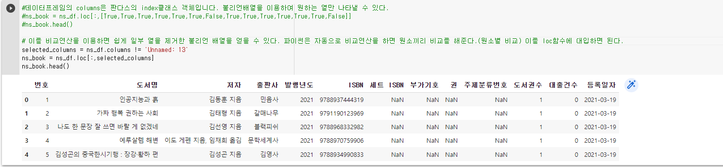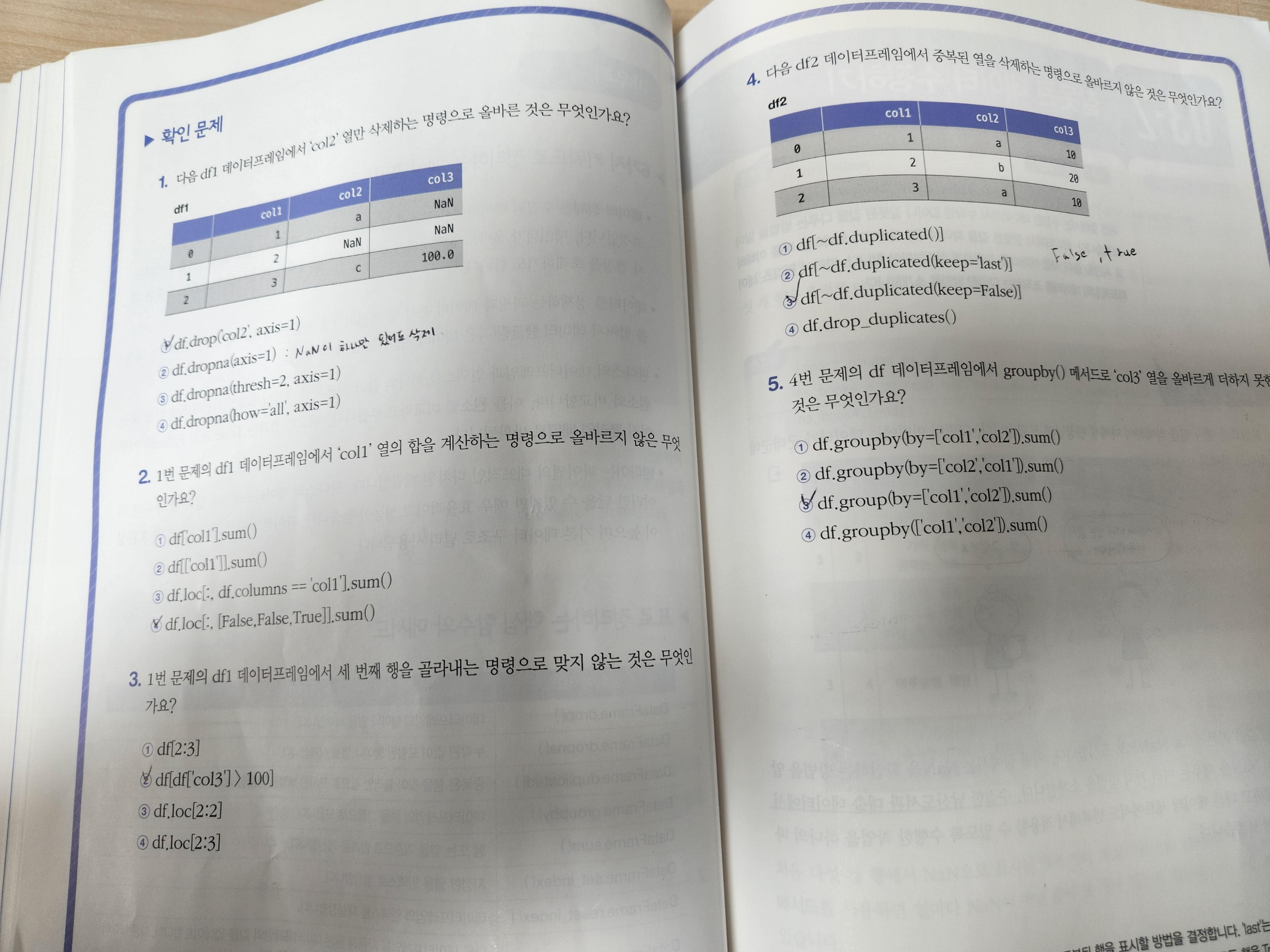 - 'col1'열의 합을 구하려면 2번째 매개변수에 [True,False,False] 불리언 배열이 들어가야 한다.