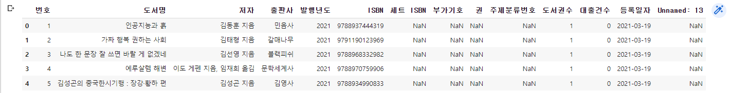 <도서명,저자,ISBN,권 행이 추가된 인덱스 행>